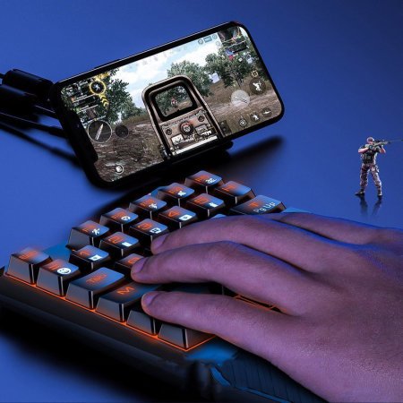 Enhance your gaming experience with this one handed keyboard from Baseus. The keyboard features 34 built in independent LED lights, coupled with laser carved transparent keycaps. The backlight illuminates the letters and symbols on the keys to make them visible in low light environments.