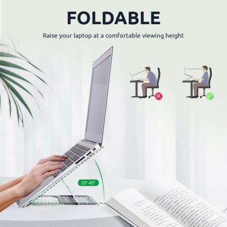 The slim compact stand from Olixar elevates your laptop by up to 6 inches for a perfect eye level and prevents you from hunching over your screen, which reduces neck and shoulder pain. Moreover, no tools are needed for adjustment, just a push or a pull action depending on your need. Also, it is foldable for easy storage and portability.