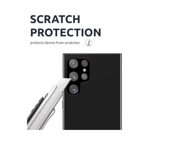 This ingenious solution to protecting your Samsung Galaxy S22 Ultra camera involve a minimal-thickness tempered glass protector. The underside of the protector sits flat on the camera and matches the contours perfectly.