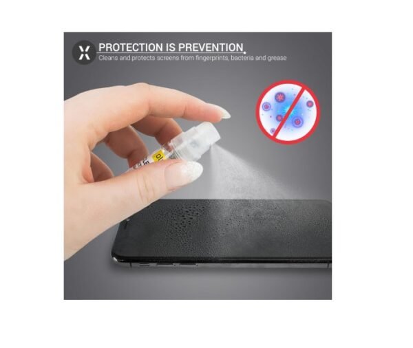 Simply apply 5 drops for smartphones or 12 for tablets and gently rub the solution across the screen of the device using the included microfibre cleaning cloth. Leave the device for 5 minutes before use to ensure the protective barrier has fully sealed.