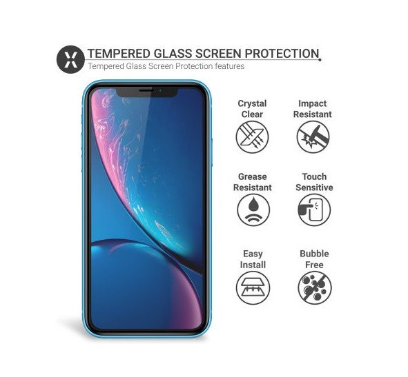 This ingenious solution to protecting your iPhone XR’s screen involves a tempered glass protector that covers most of the the edges of the curved screen, allowing you to use most cases on the market with it too. The underside of the screen protector sits flat on the screen and follows the contours of your phone’s screen perfectly. This covers the entire screen and offers complete protection. No more compromising by leaving the curved edges exposed and this also ensures no dirt will get in – so no more “halo effect”. By allowing you to use a case, you can have the complete protective solution for your phone.