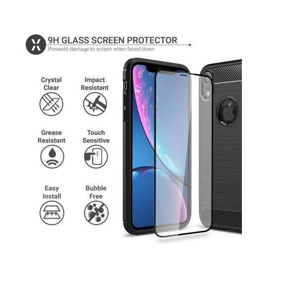 Olixar Sentinel iPhone XR Case and Glass Screen Protector – Black